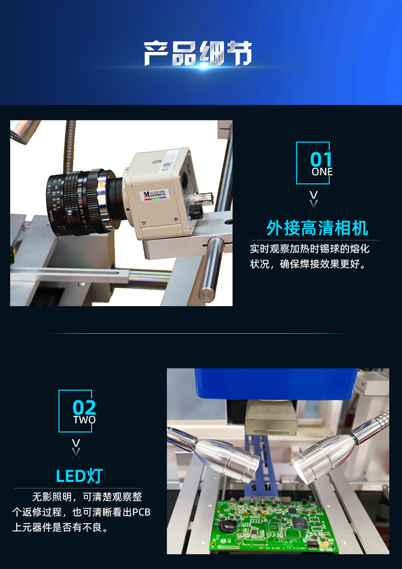 2. 外接高清相機(jī),實(shí)時(shí)觀察加熱時(shí)錫球的熔化狀況,確保焊接效果更好;