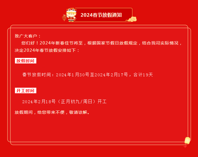 鼎華科技2024年春節(jié)放假通知